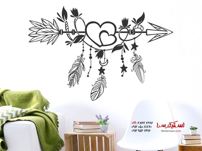 برچسب دیواری طرح پیکان قومی با پر