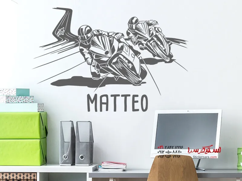 برچسب دیواری مسابقه موتورسواری با نام دلخواه