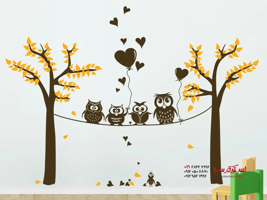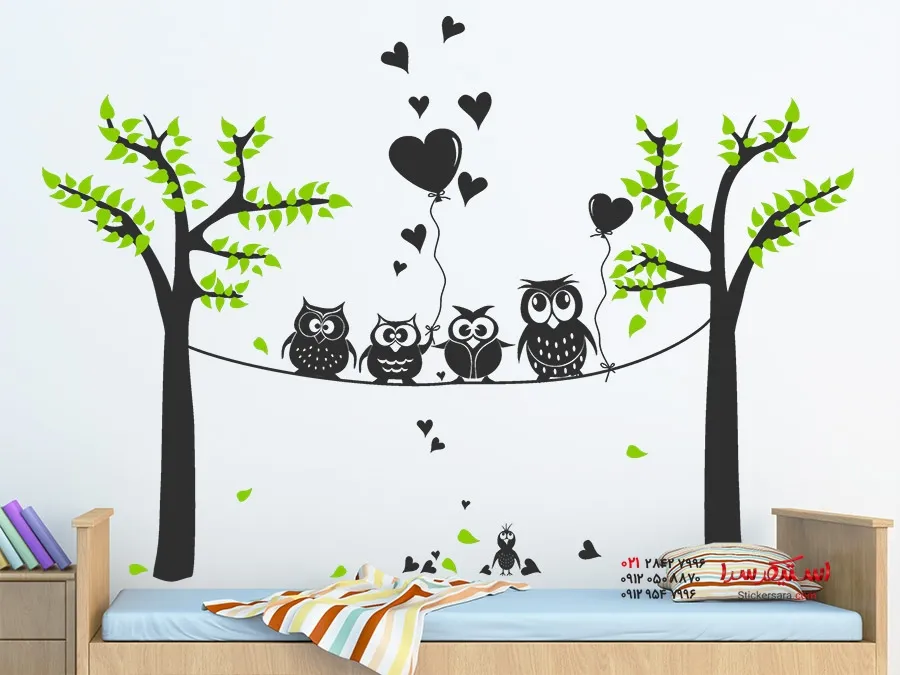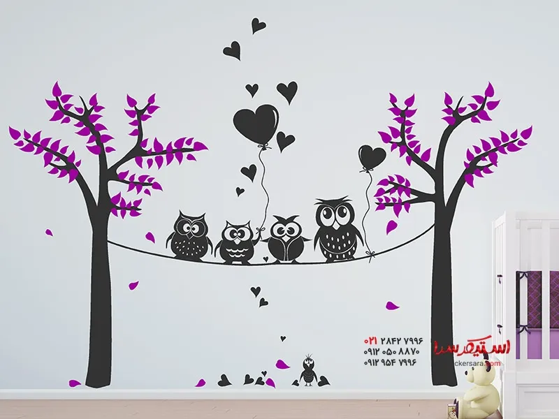دسته: ), برچسب دیواری جغد, درخت, درخت اتاق کودک, مهد کودک