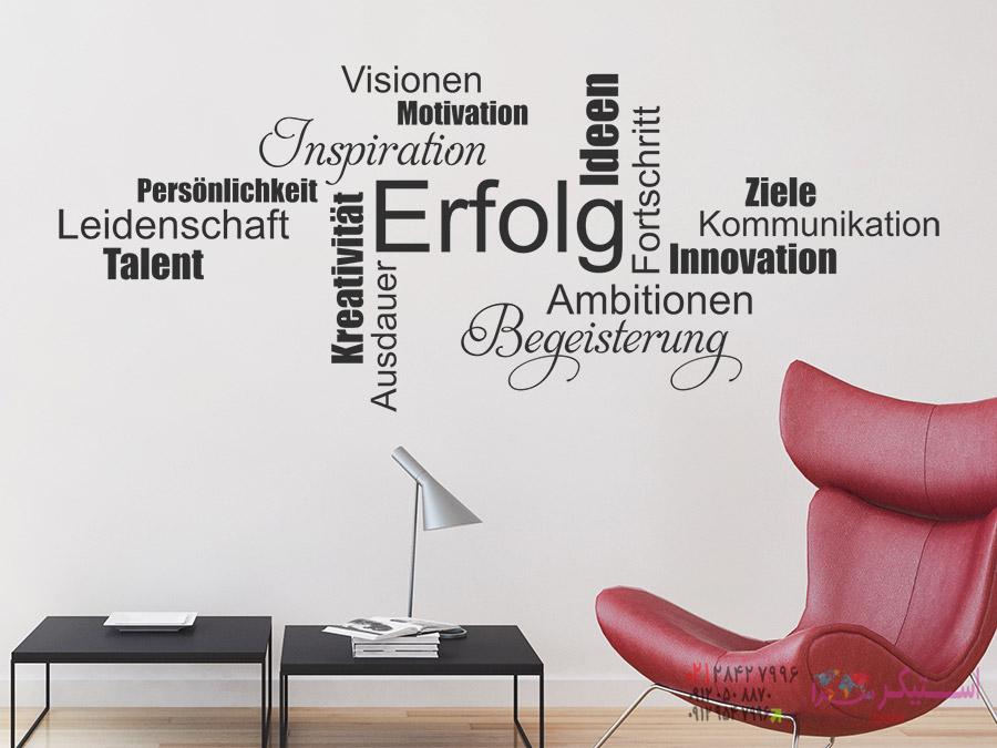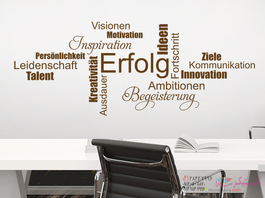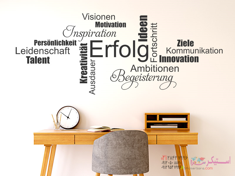 برچسب دیواری مدرن «موفقیت» با طرح ابر کلمه، ایدهای الهامبخش برای طراحی دیوار محل کار شماست.