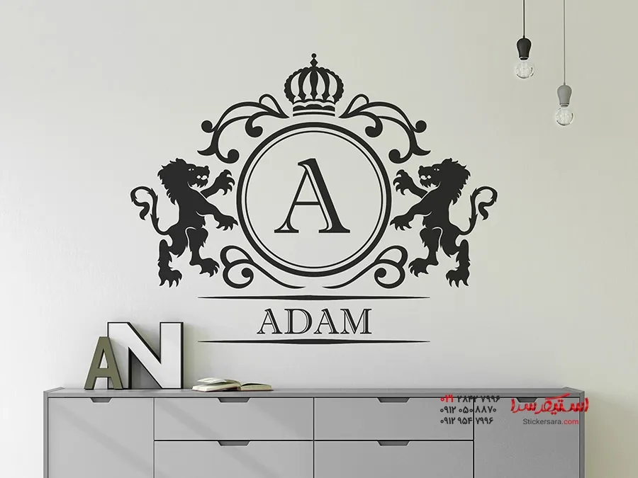 برچسب دیواری نشان خانوادگی با شیر و نام