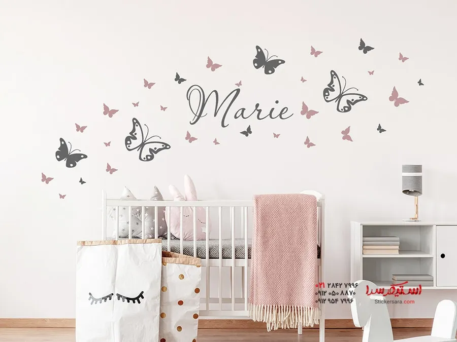 خانه استیکر دیواری اتاق کودک اصلی برچسب دیواری پروانه با اسم دلخواه