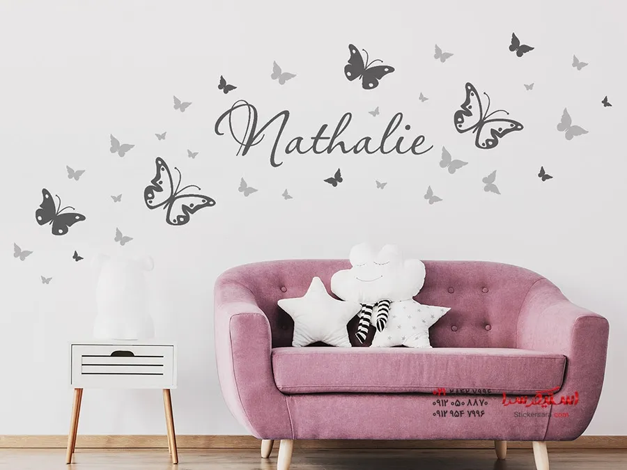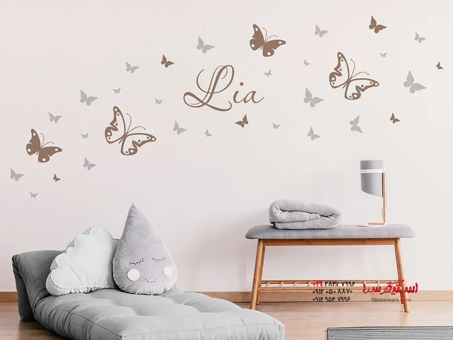 برچسب دیواری پروانه با اسم دلخواه