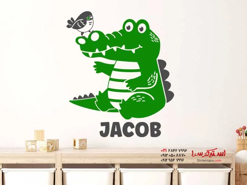 برچسب دیواری: کروکودیل بامزه با نام دلخواه