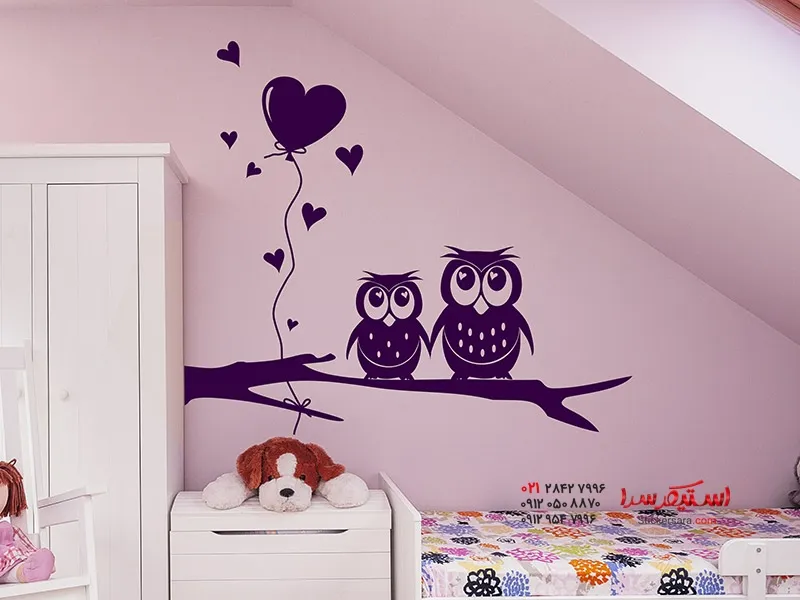 دسته: ), اتاق کودک, برچسب دیواری جغد, شاخه, قلب لینک