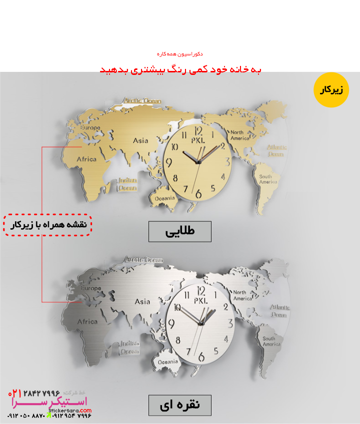 خانه برچسب دیواری نقشه جهان ساعت دیواری نقشه جهان طلایی با(زیرکار شفاف)