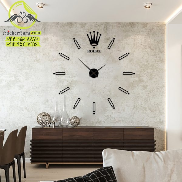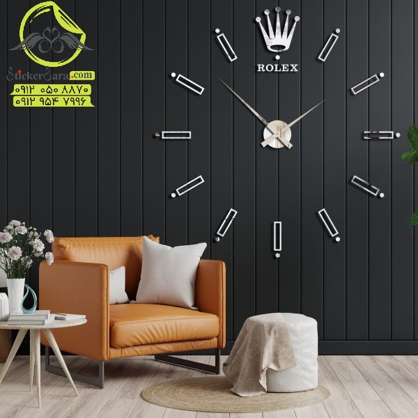 ساعت دیواری طرح رولکس در دو قطر 60 و 120 سانتی روی دیوار نیاز به اکسسوری دکوراتیو مکمل ندارد .