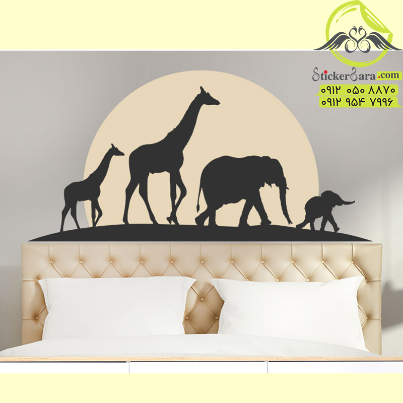 عکس برچسب دیوار غروب آفتاب با حیوانات