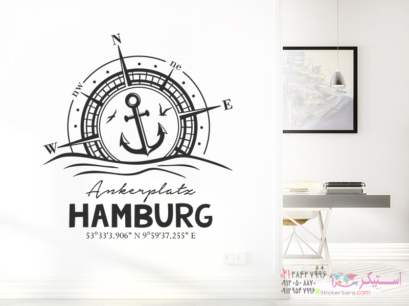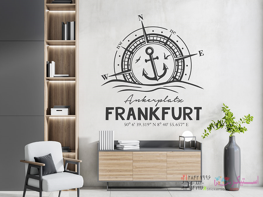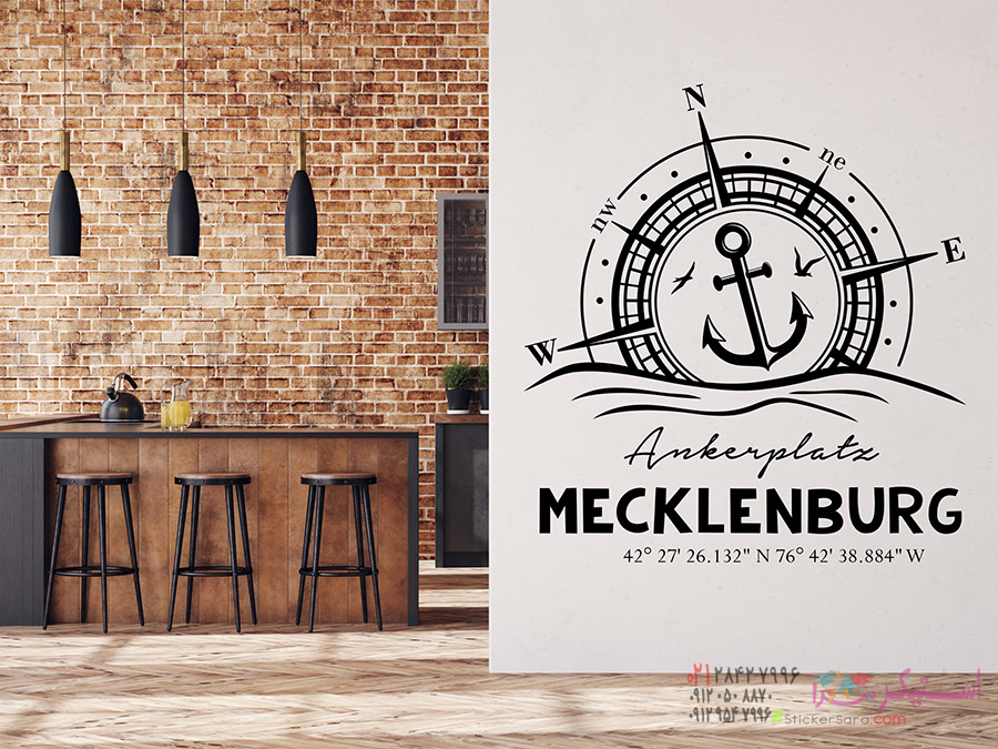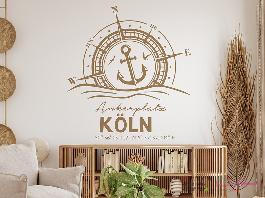 یک ایده طراحی دیواری بدیع با حال و هوای دریایی: برچسب دیواری قطبنما با محل دلخواه و محل قرارگیری حروف.