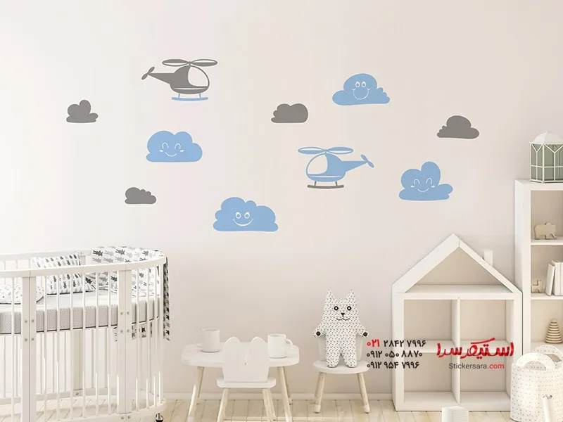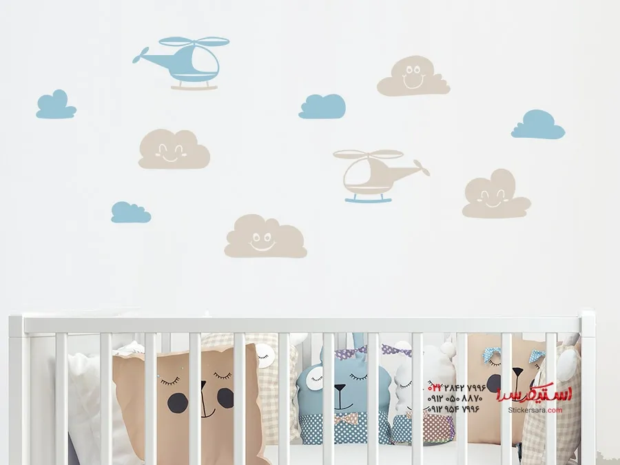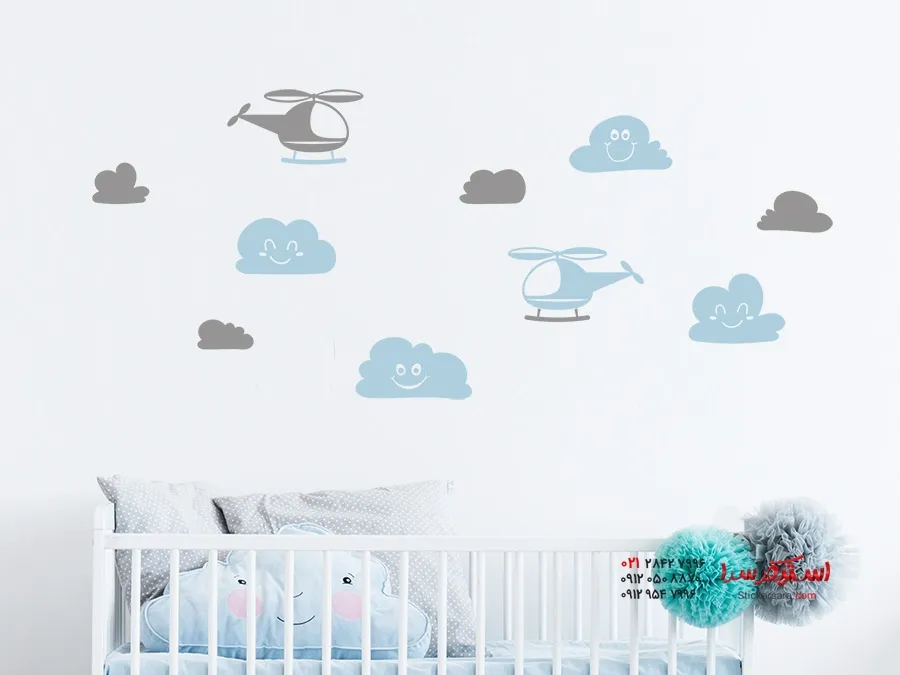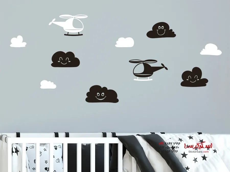 مجموعه برچسب دیواری هلیکوپتر با ابرها