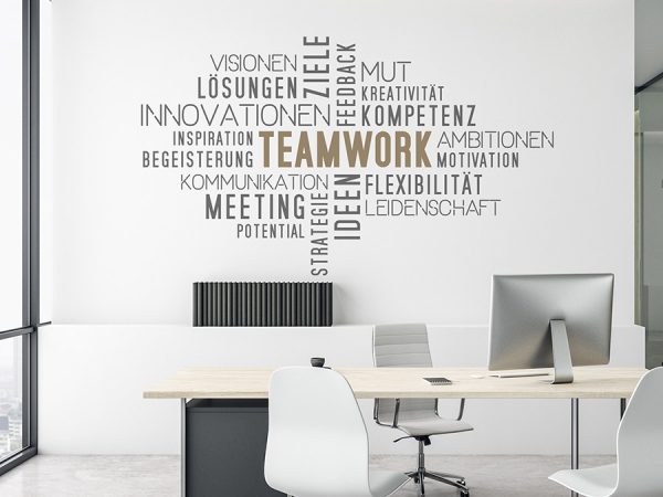 دفتر یا محل کار را به شیوه ای الهام بخش و خلاقانه با برگردان دیواری کار تیمی ابری دو رنگ طراحی کنید.