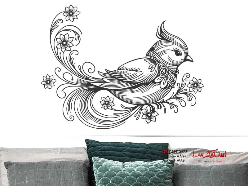 برچسب دیواری تزئینی طرح پرنده زیبا با گل، فضایی عالی در خانه شما ایجاد میکند.