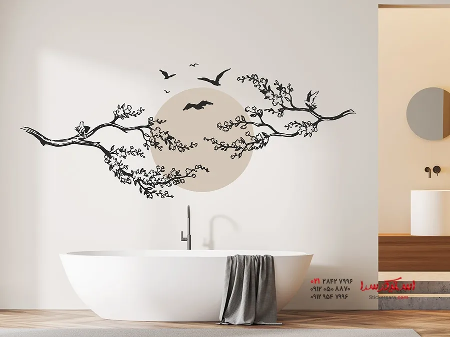 با برچسب دیواری مدرن دو رنگ شاخهای طرح طلوع آفتاب، میتوانید فضایی آرامشبخش و دلنشین در خانه خود ایجاد کنید.