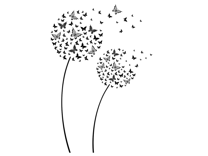 اندازهها مربوط به دو گیاه گلدار است، به جز پروانههای در حال پرواز. میتوانید اینها را به دلخواه دور برچسب دیواری قرار دهید.