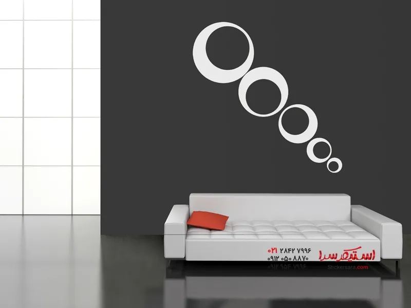 این برچسب دیواری از پنج دایره تشکیل شده است که در یک خط قرار گرفتهاند. همچنین میتوانید دایرهها را به صورت جداگانه و مطابق میل خود بچینید و هر دایره را جداگانه روی دیوار بچسبانید.