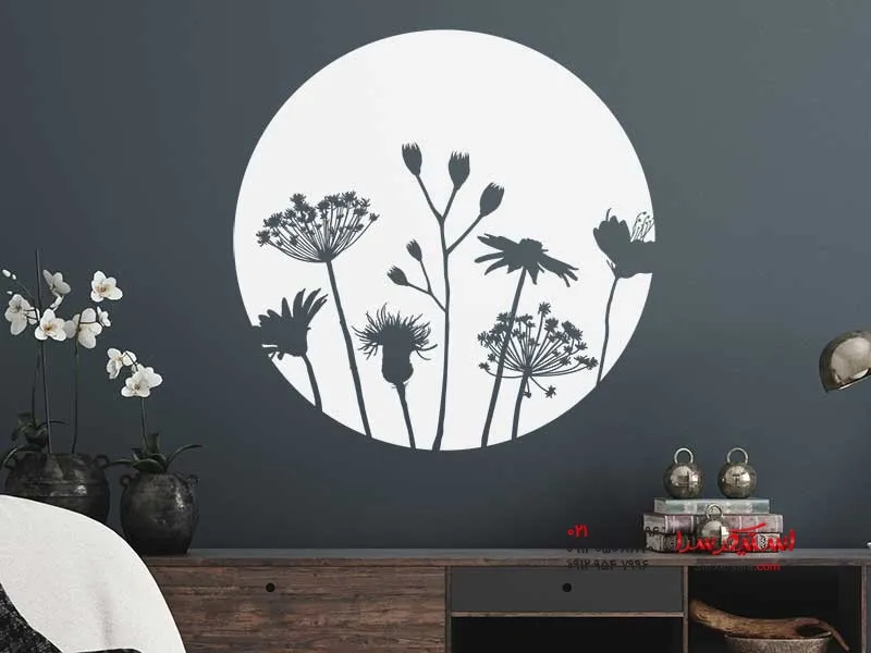 برچسب دیواری دایرهای شکل با گلهای چمنزار، جلوهای رنگارنگ و زیبا ایجاد میکند و مطمئناً در هر اتاقی چشمنواز خواهد بود.