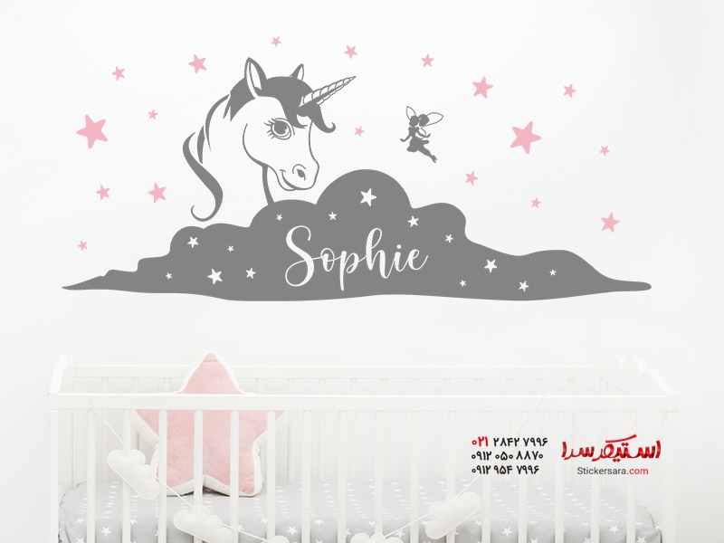 استیکر دیواری ابر اسب شاخدار با اسم دلخواه