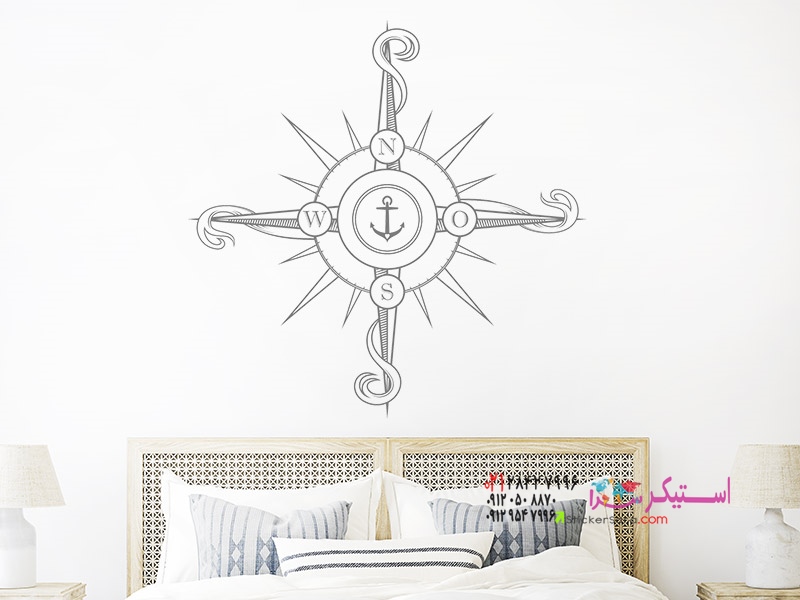 دکوراسیون دیواری غیرمعمول با تمام جهات اصلی: برچسب دیواری طرح قطب نما با لنگر.