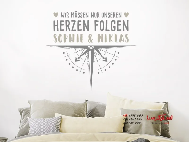 برچسب دیواری قلبهای قطبنما با نام