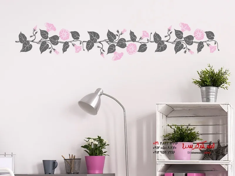 این تزیین دیوار شاد با گلها و برگهای سرسبز، با طراحی دو رنگ خود، نفسی تازه به خانه شما میآورد.