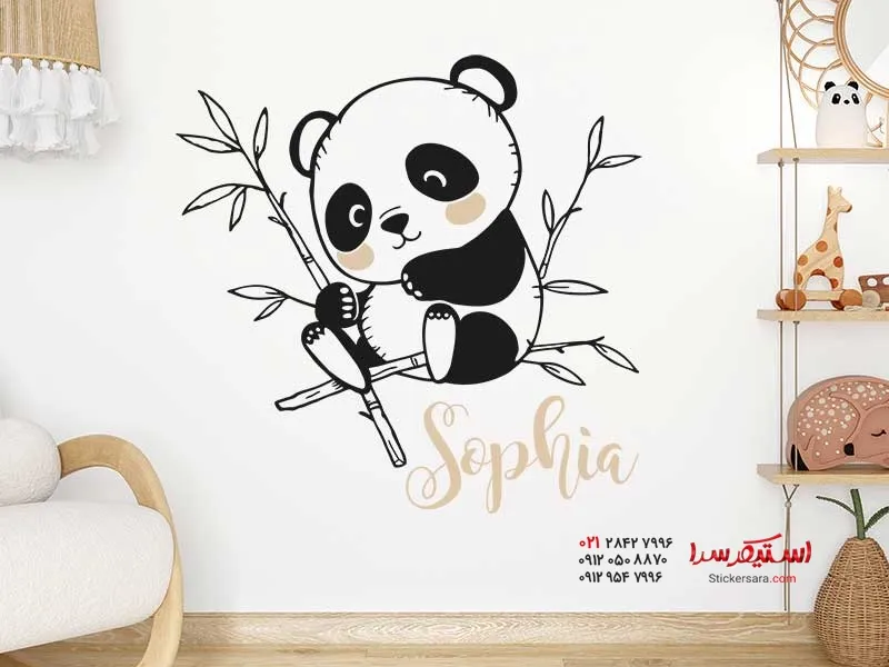 استیکر دیواری پاندای بامزه با اسم دلخواه