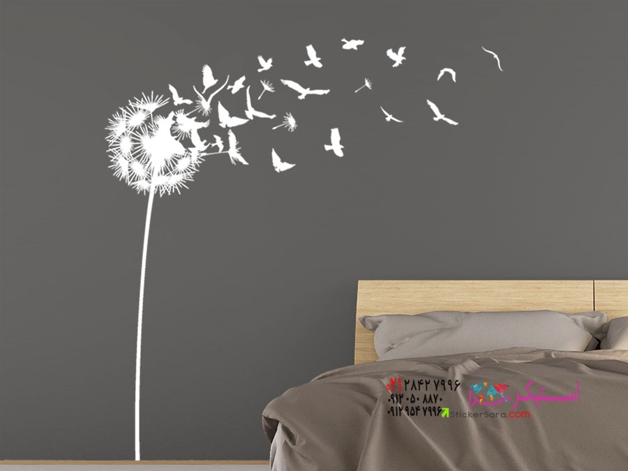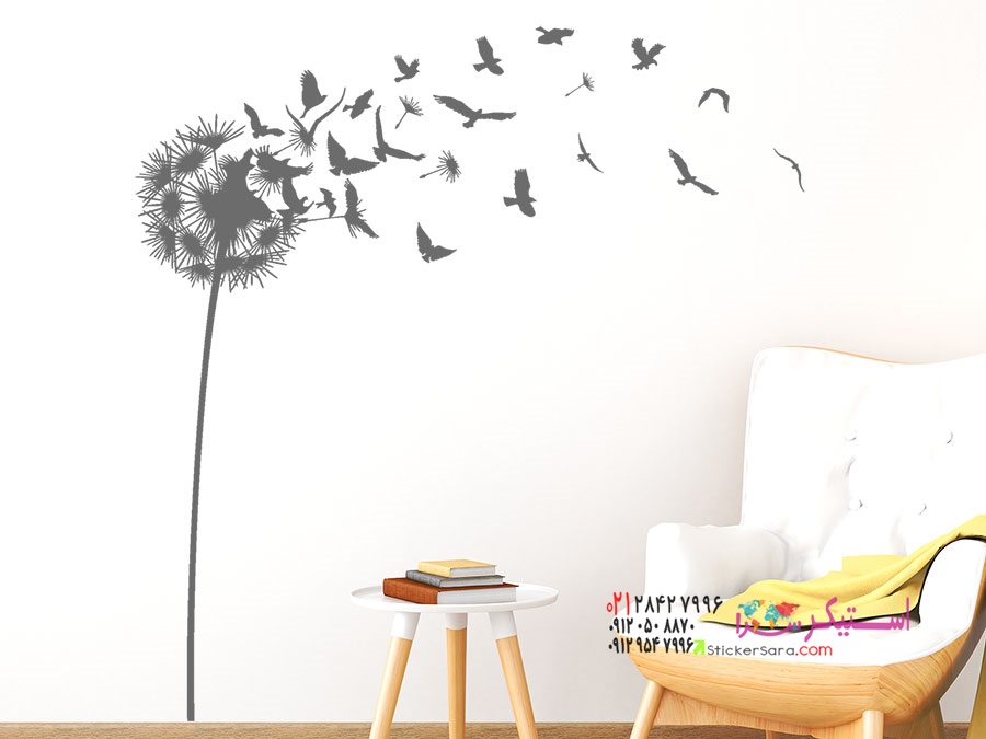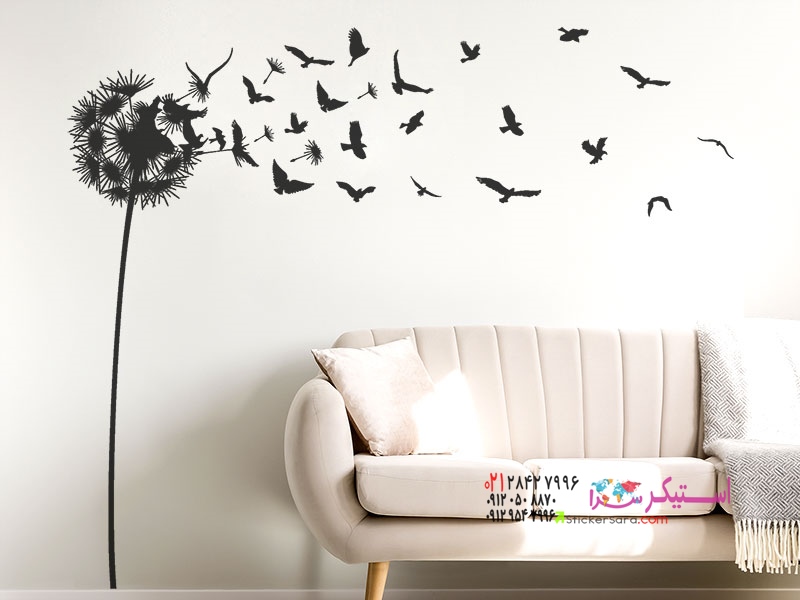 برچسب دیواری قاصدک با پرندگان در حال پرواز
