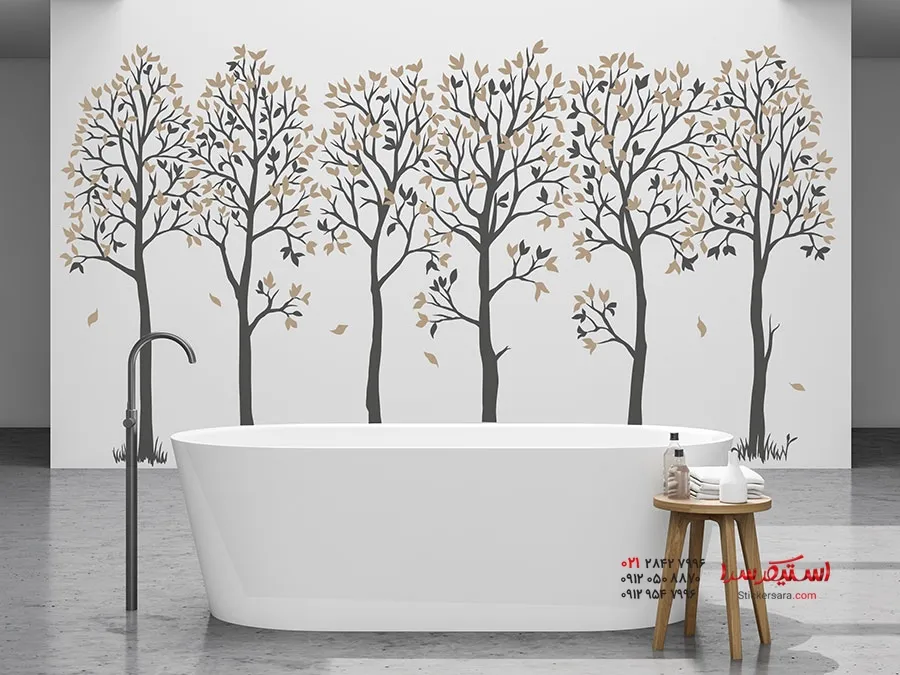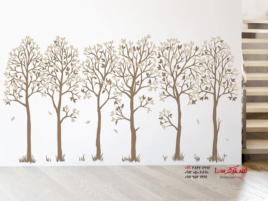 با برچسب دیواری دو رنگ طرح درخت تزئینی، متشکل از شش درخت، خیابانی در میان چهار دیوار خود ایجاد کنید.