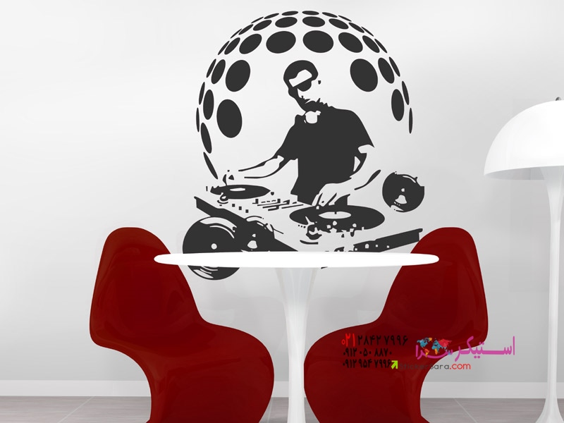 برچسب دیواری جذاب دیجی. این برچسب دیواری دیجی با طرح توپ دیسکو، حال و هوای یک کلوب را ایجاد میکند.