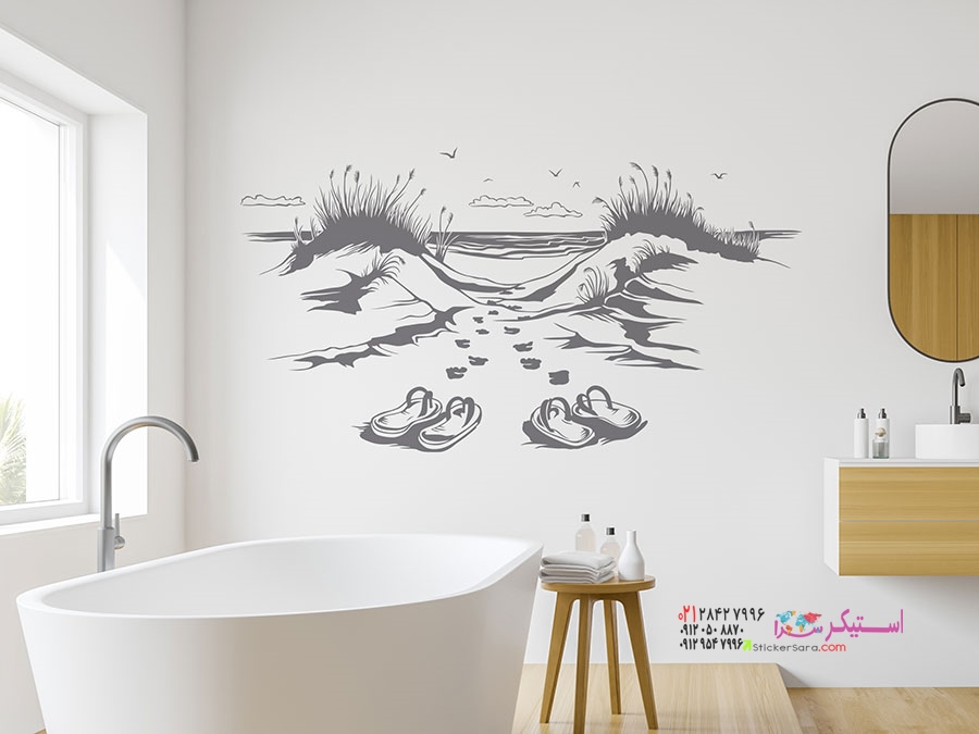 برچسب دیواری رمانتیک با طرح دریایی از تپه‌های شنی تا ساحل، با جزئیات تزئینی فراوان، فضایی تعطیلاتی را در چهار دیوار خانه شما ایجاد می‌کند و باعث می‌شود بخواهید با هم وقت بگذرانید.