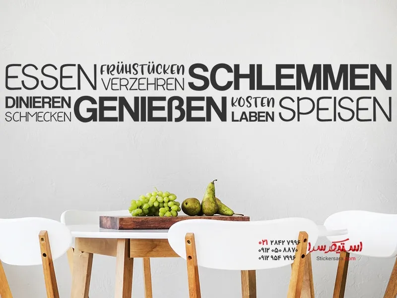 نکته: همچنین میتوانید کلمات یا خطوط جداگانه را با قیچی برش دهید و آنها را به دلخواه خود اعمال کنید. امکانات بیپایان هستند. اگر میخواهید از برچسب دیواری به عنوان یک حاشیه کلاسیک به سبک مدرن استفاده کنید، کافیست دو یا چند حاشیه «خوردن و لذت بردن» را در کنار یکدیگر بچسبانید.