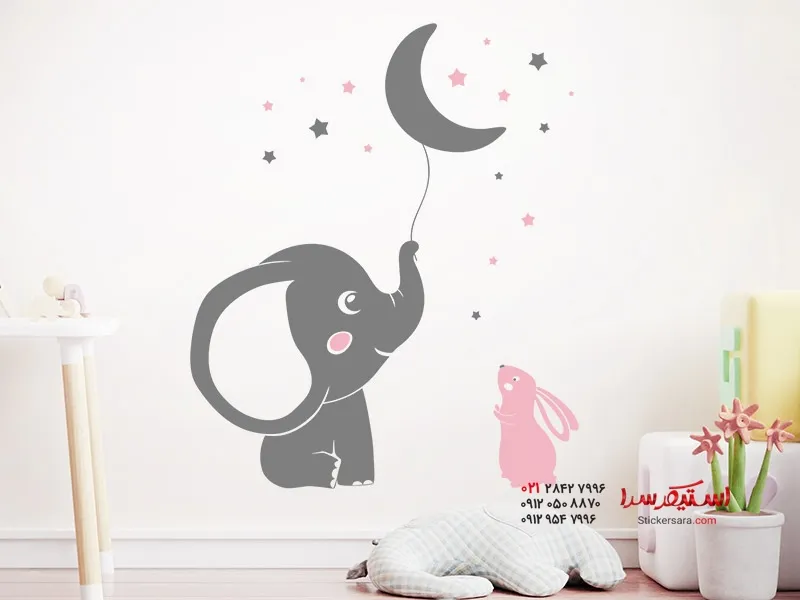 استیکر دیواری فیل با ماه و خرگوش