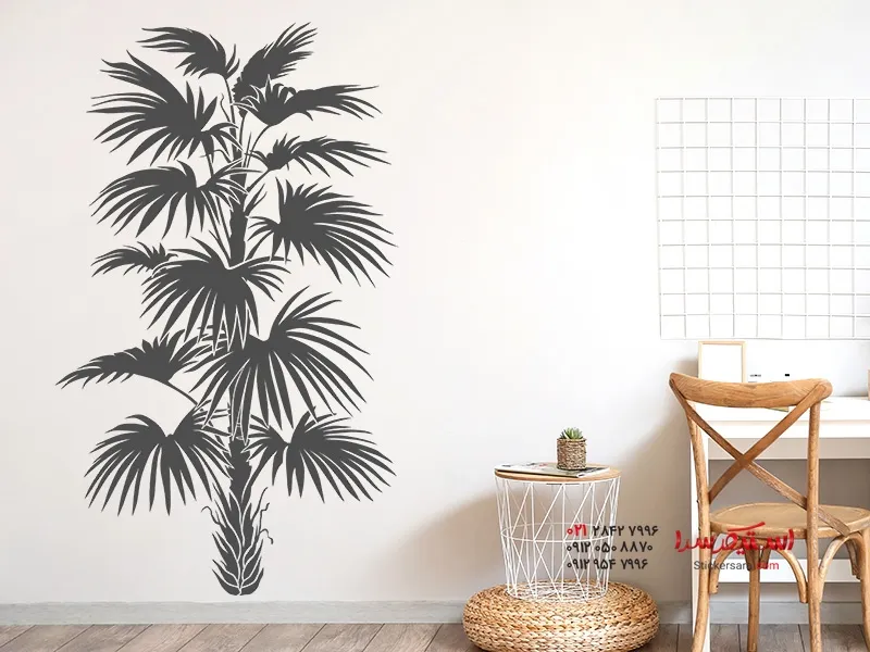 برچسب دیواری طرح نخل بادبزنی عجیب و غریب، جلوهای خیرهکننده به خانه شما میبخشد و حال و هوای تعطیلات را القا میکند.
