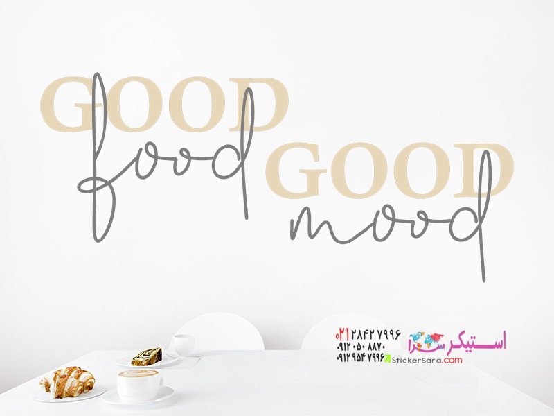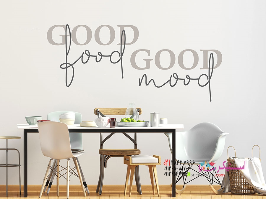 عکس برچسب دیواری جمله غذای خوب حال خوب
