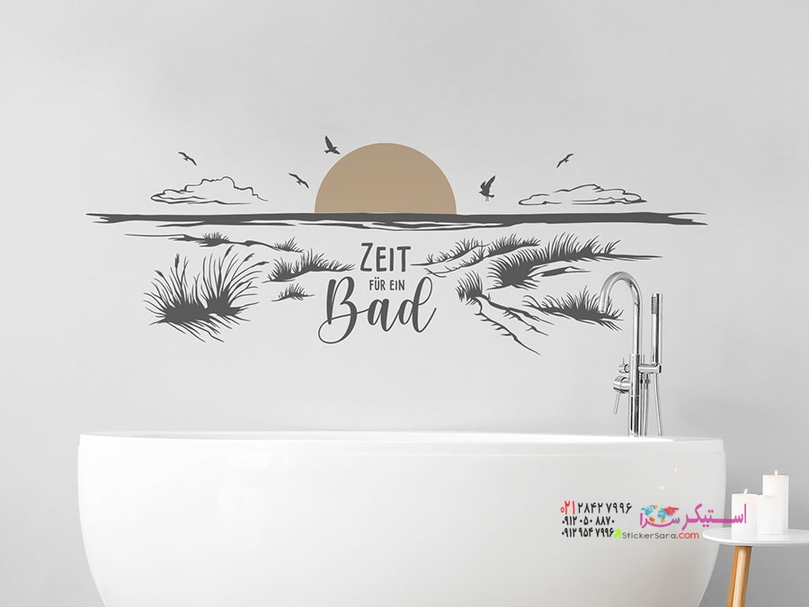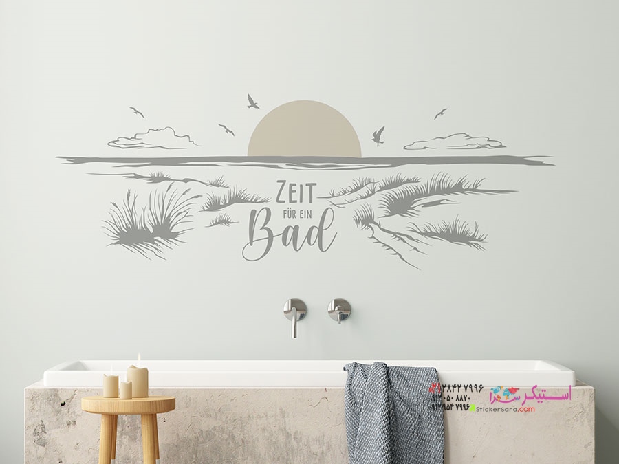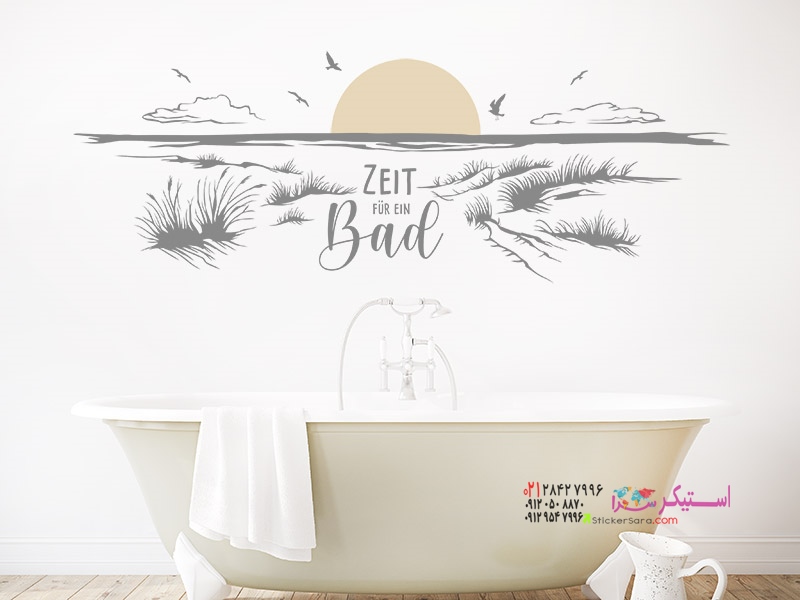 خانه حمام برچسب دیواری وقت شنا در ساحل است