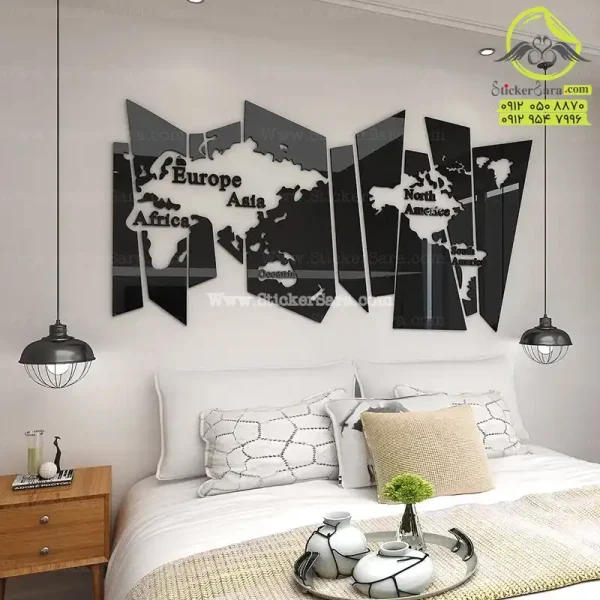 آینه دیوار نقشه جهان بزرگ دکوری برای دفتر یا اتاق نشیمن همراه با نام قاره ها