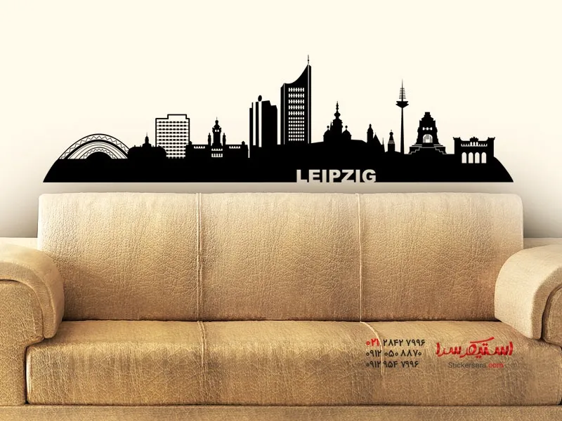 مکانهای دیدنی معروف شهر نمایشگاه تجاری لایپزیگ به عنوان یک برچسب دیواری تزئینی.