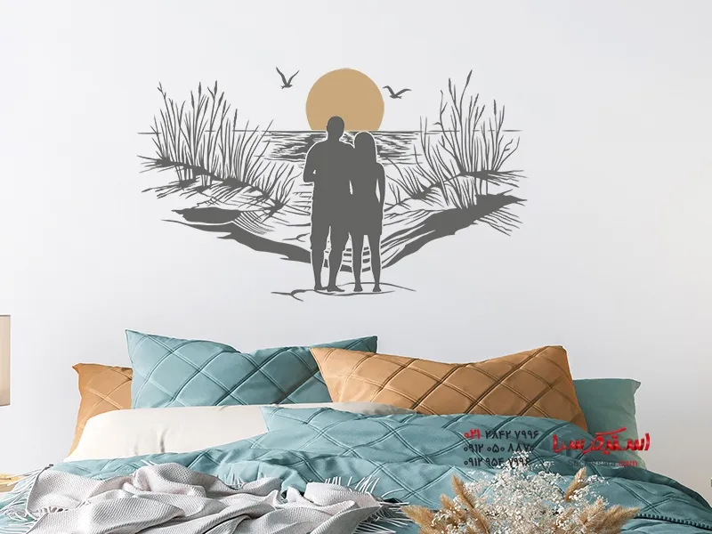 یک ایده دکوراسیون رمانتیک خاص که شما را به رویاپردازی با هم دعوت میکند، برچسب دیواری یک زوج در ساحل هنگام غروب آفتاب است.