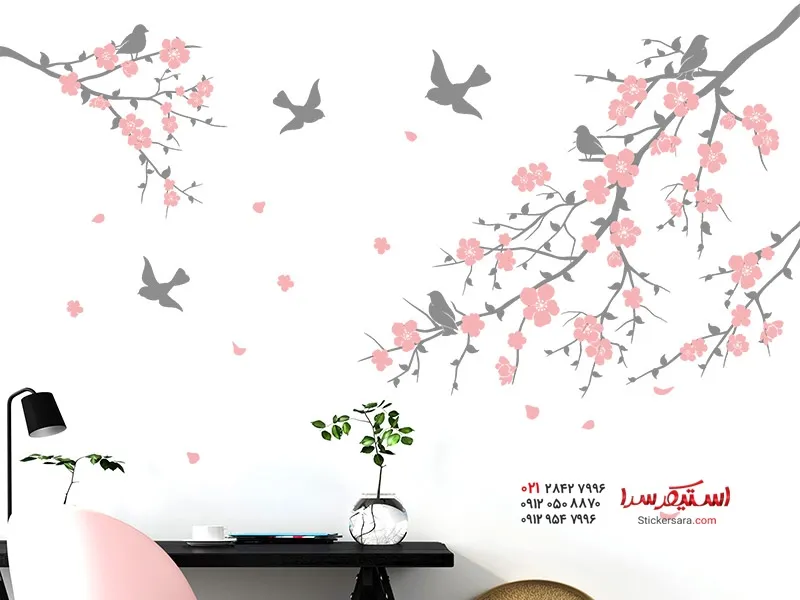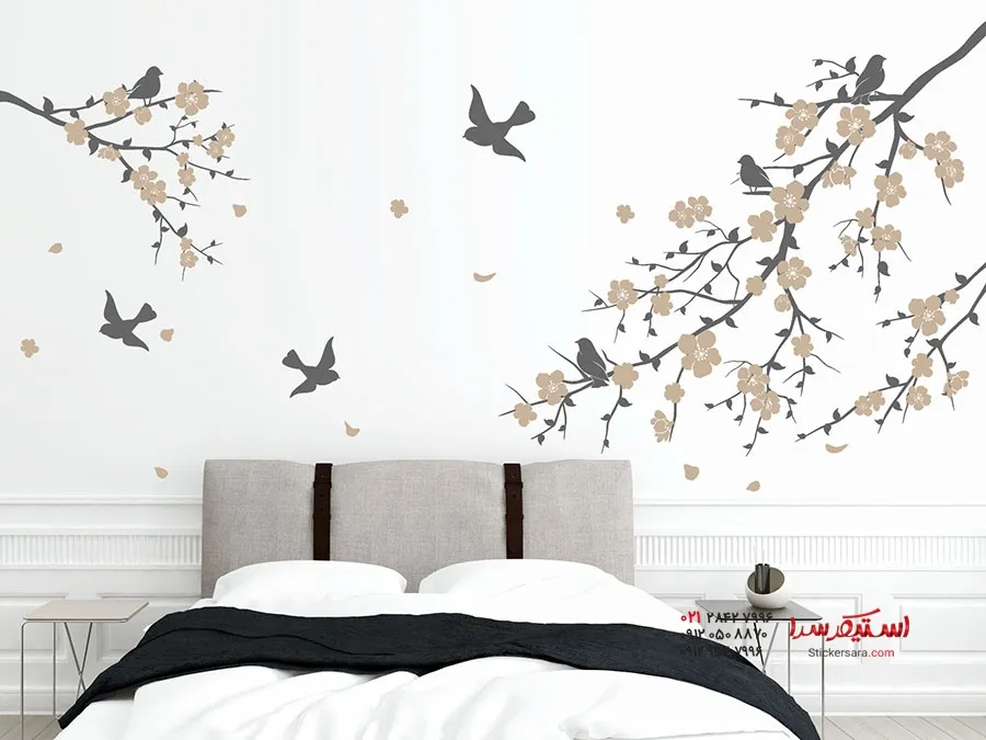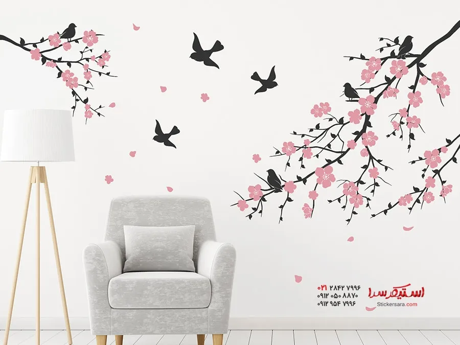با برچسب دیواری دو رنگ «شاخههای سرسبز با شکوفهها» میتوانید حال و هوای بهاری را در خانه خود ایجاد کنید.