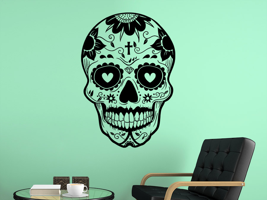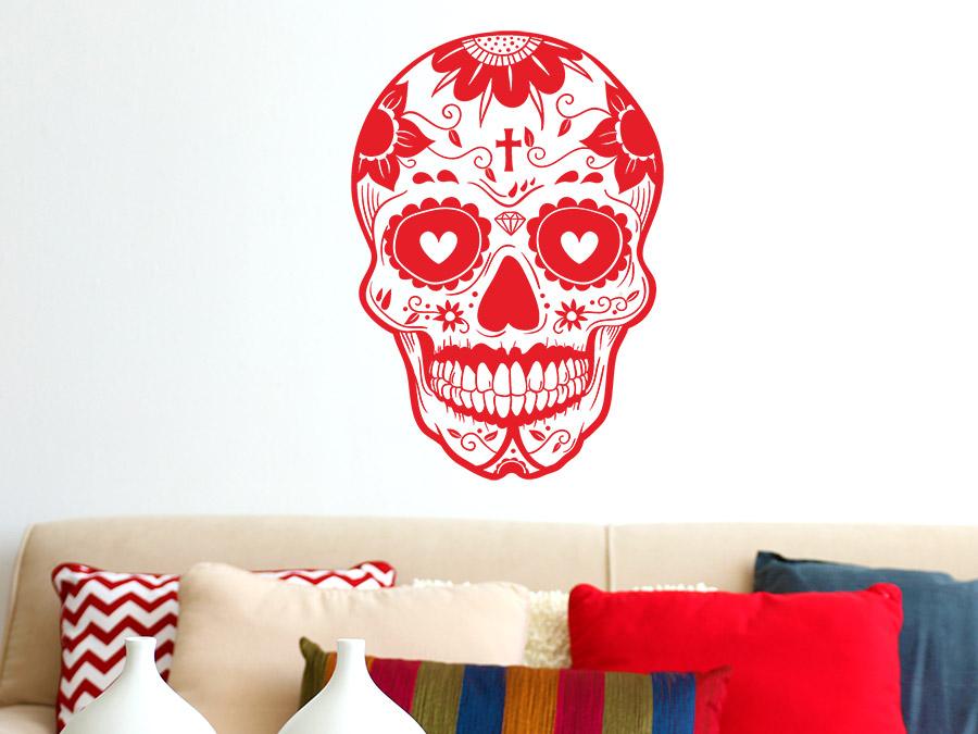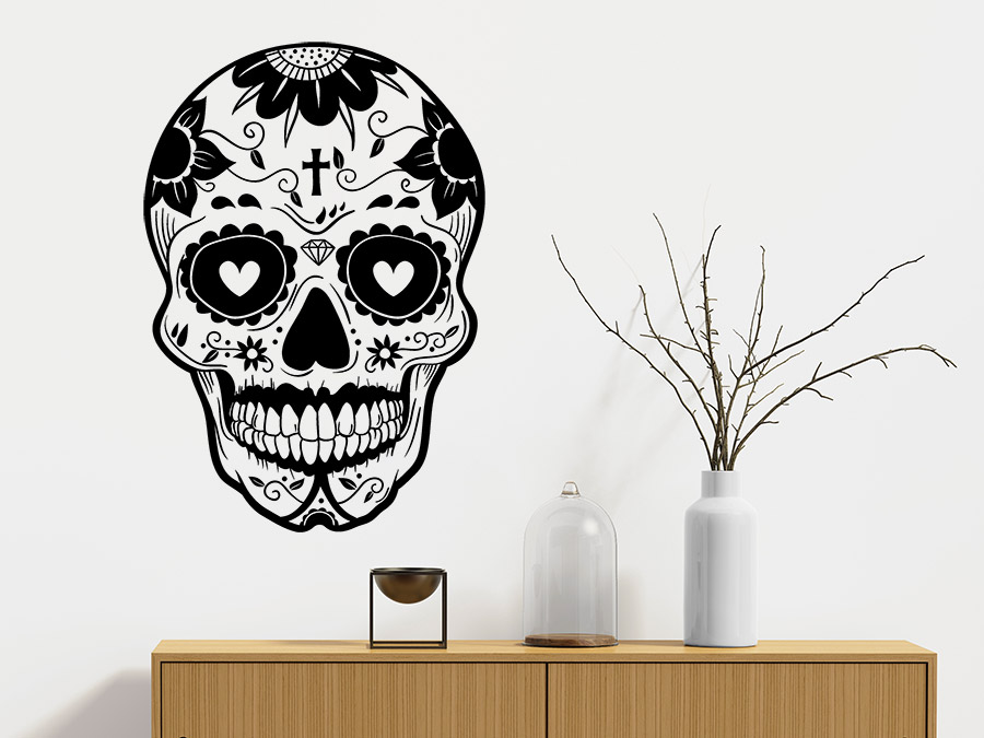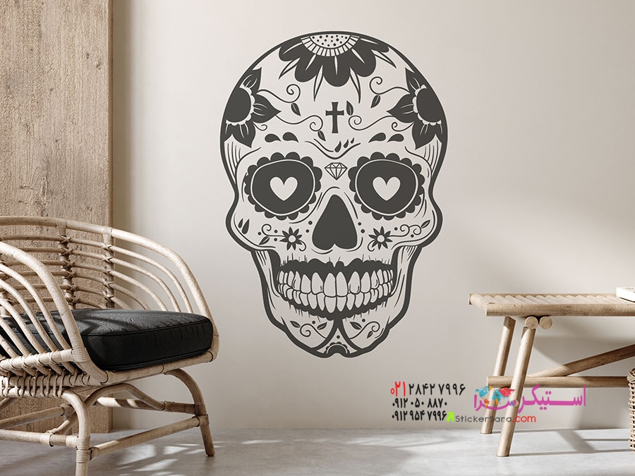 برچسب دیواری جمجمه به سبک مکزیکی، فضایی جادویی ایجاد میکند.