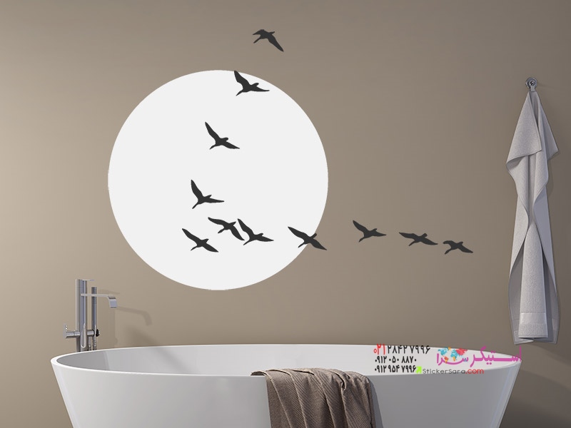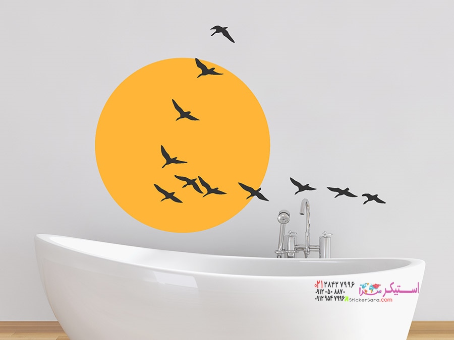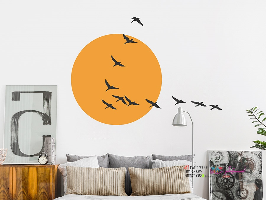 برچسب دیواری دو رنگ تزئینی «پرندگان مهاجر در نور خورشید» حال و هوای دریایی را به اتاق شما میآورد.