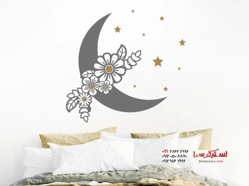 یک طرح دیواری بدیع با عناصر تزئینی برای دیوارهای اتاق خواب: برچسب دیواری گل ماه با ستاره.