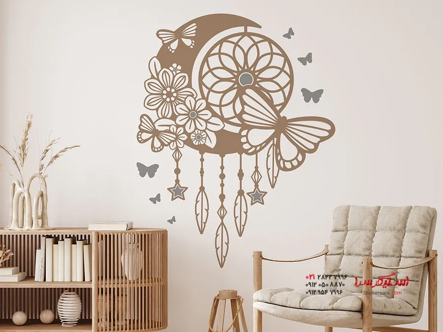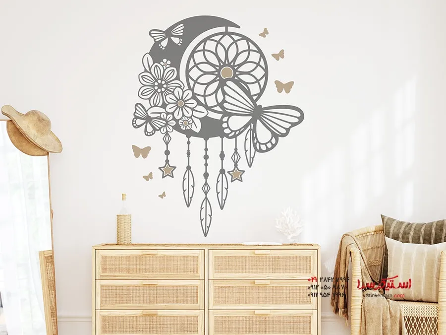 برچسب دیواری ماه با طرح رویاگیر و پروانه