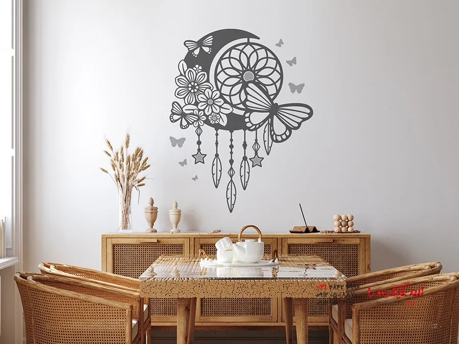 با برچسب دیواری غیرمعمول ماه با طرح دریم کچر و پروانهها به سبک بوهمی، میتوانید فضایی مثبت را در خانه خود ایجاد کنید.