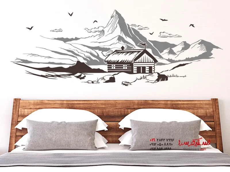 برچسب دیواری رمانتیک کلبه کوهستانی در کوهستان، حال و هوای بعد از اسکی را در خانه شما ایجاد میکند.
