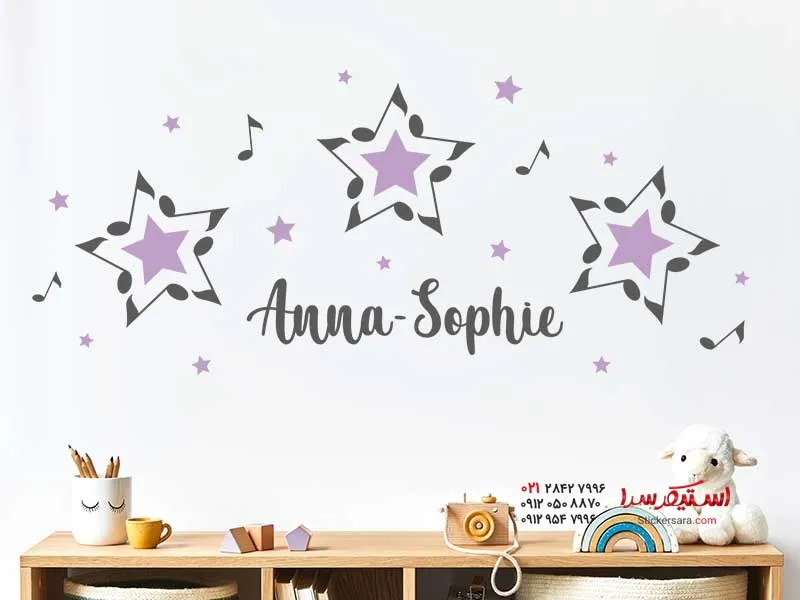 استیکر دیواری نت موسیقی و ستاره با نام دلخواه