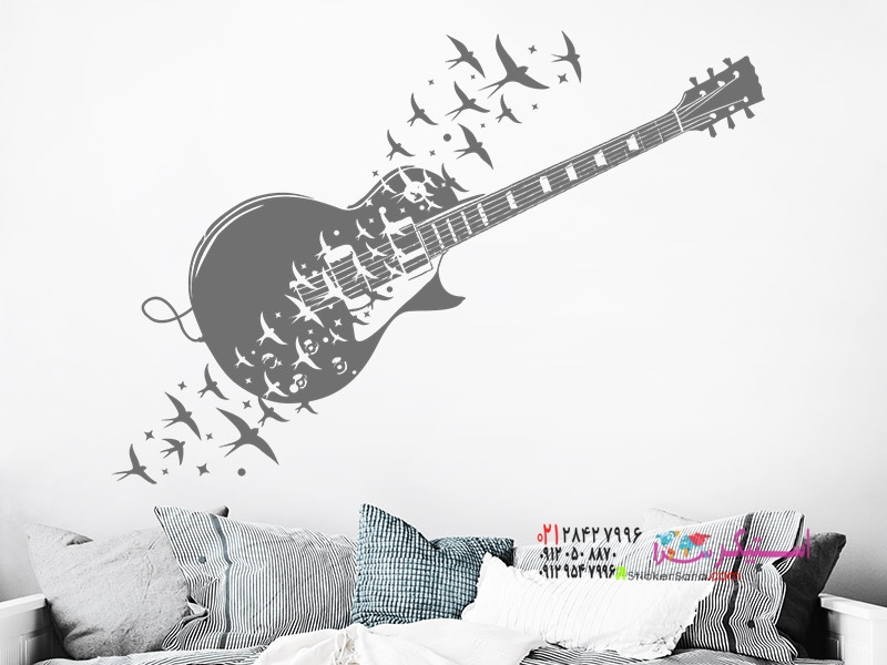 یک طرح دیواری اورجینال برای همه دوستداران موسیقی: استیکر دیواری گیتار قدیمی با طرح پرندگان.