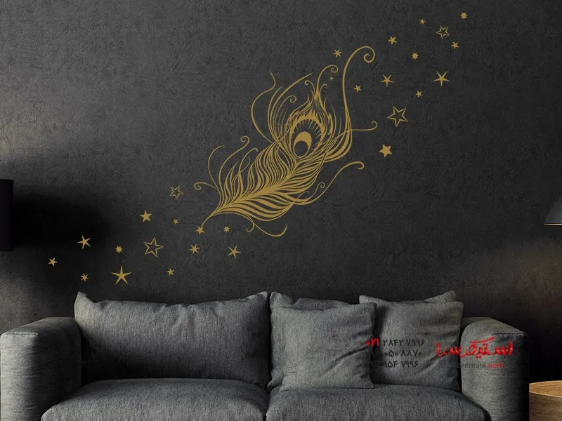 برچسب دیواری رمانتیک طرح پر طاووس با ستاره نه تنها در اتاق نشیمن عالی به نظر میرسد، بلکه به عنوان مثال در اتاق خواب بالای تخت نیز عالی به نظر میرسد.