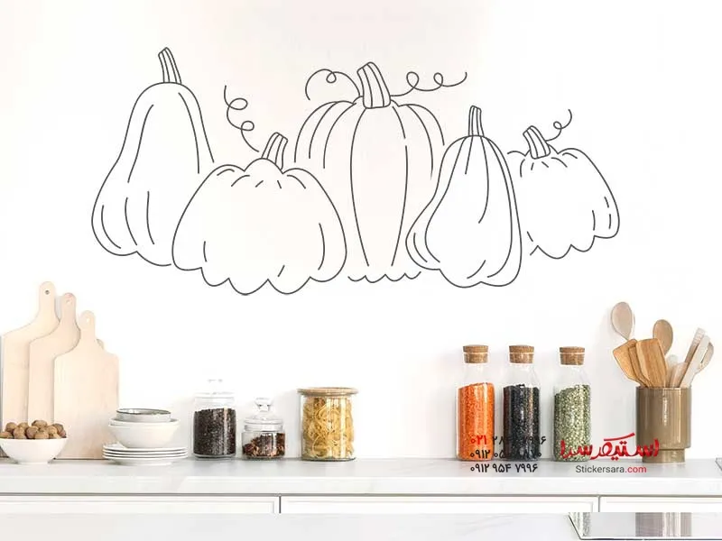 برچسبهای دیواری تزئینی کدو تنبل در یک طراحی مدرن، نه تنها در آشپزخانه، جلوههای زیبایی ایجاد میکنند.