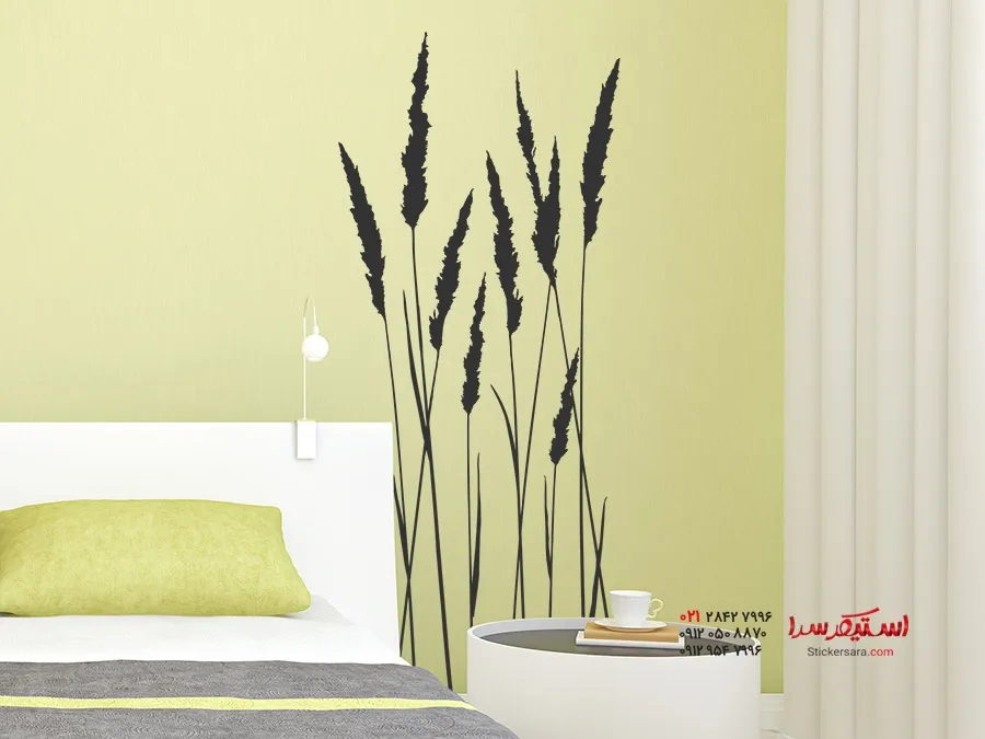 خانه استیکر دیواری گل و گیاه برچسب دیواری طرح چمن نیزار