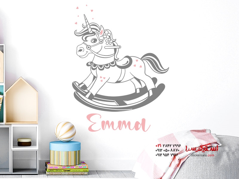 استیکر دیواری اسب گهواره ای با اسم دلخواه